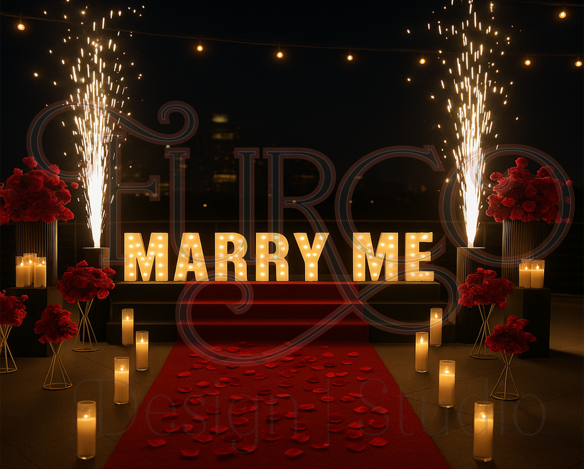 Make your proposal unforgettable with a bespoke setup designed to capture the magic of the moment. From romantic floral arches and glowing candlelit aisles to personalised touches that reflect your love story, every detail is styled with care to create the perfect ‘yes’ moment. Browse through our designs for inspiration, each one is fully customisable to suit your vision, ensuring a proposal as unique as your journey together.